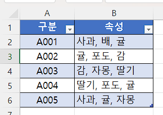 한 셀에 여러개의 데이터가 입력되어 있는 경우가 있습니다.