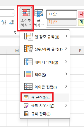 그다음 홈 → 조건부 서식 → 새 규칙을 선택합니다.