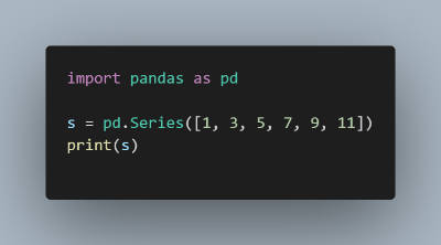 pandas는 파이썬에서 사용되는 데이터를 조작하기 위한 라이브러리입니다.pandas를 사용해서 대규모 데이터를 사용하고복잡한 작업을 간결하게 수행할 수 있습니다. Pandas의 데이터 구조 pandas는 Series와 DataFrame라는 두가지 데이터 구조를 제공합니다.Series는 1차원 레이블이 지정된 배열이며,DataFrame는 2차원 레이블이 지정된 배열입니다. Series는 1차원 레이블 배열로 Pandas의 핵심 데이터 구조입니다.간단한 예를 살펴보겠습니다.위 코드를 실행하면 다음과 같은 결과가 나타납니다. 코드에서는 단순히 [ 1, 3, 5, 7, 9, 11 ]만 입력하였는데앞에 [ 0, 1, 2, 3, 4, 5 ]라는 숫자가 붙어 있습니다.앞에 있는 숫자는값[ 1 ~ 11 ]에 접근하..